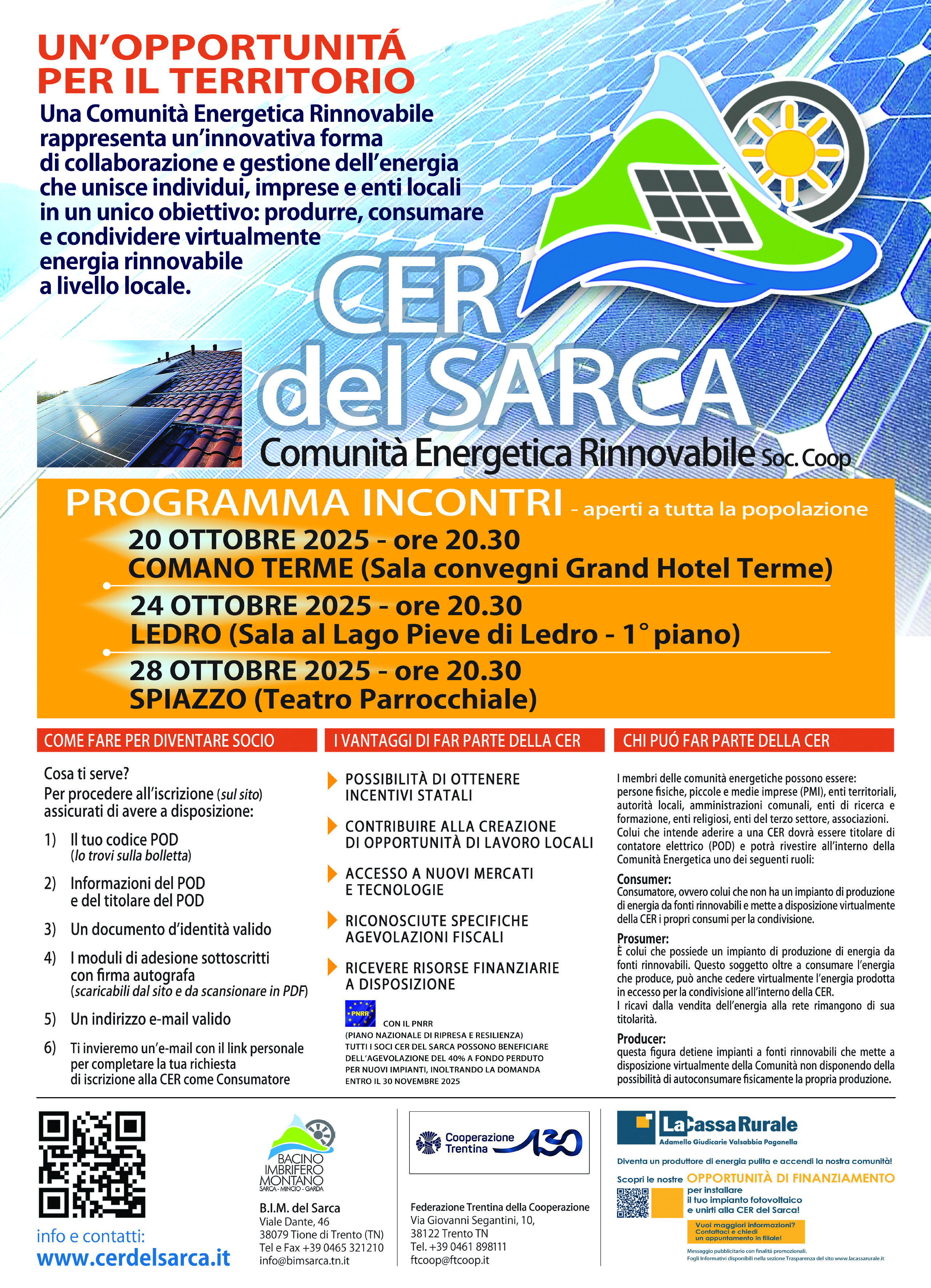 - 20 ottobre alle ore 20:30 a Comano Terme, presso la Sala Convegni del Grand Hotel Terme